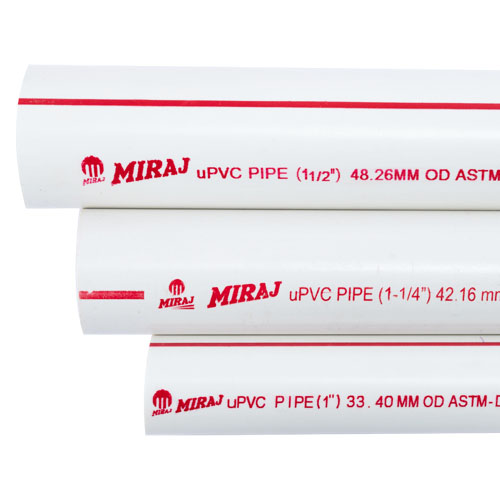 MIRAJ uPVC PLUMBING PIPES (White) high pressure water distribution system is ideal replacement for galvanised iron pipe system for cold water application. It is UV stabilised and provides leak proof joints as they are welded by solvent cement.